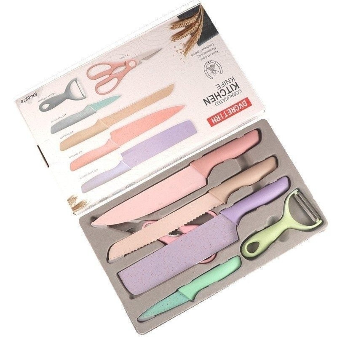 As facas possuem um corte extremamente afiado, ideal para cortes precisos de carnes, legumes e frutas. Para maior conveniência, o conjunto inclui também uma tesoura multiuso e um descascador, facilitando ainda mais suas tarefas culinárias diárias.